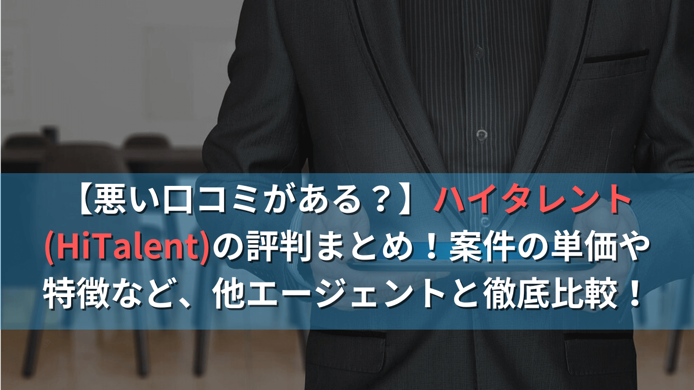 この記事では、ハイタレントのリアルな評判・口コミ、案件の特徴や単価構造、そして業界の主要エージェントとの徹底比較を行い、あなたがハイタレントに登録すべきかどうかの判断材料を網羅的に提供します。