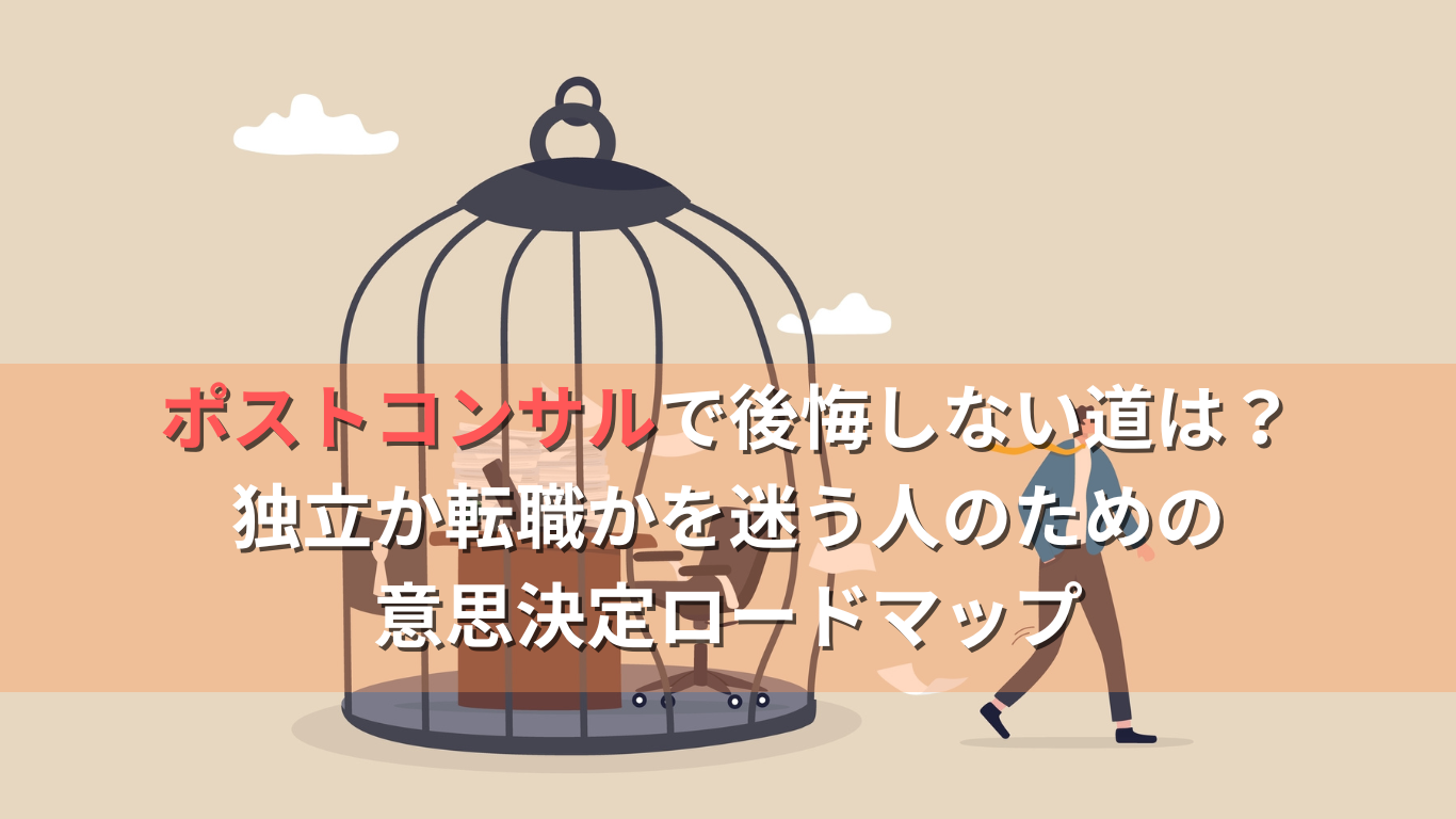楽そうだから事業会社にしようなど、周囲に流されて闇雲に転職すれば、後悔する未来に進むかもしれません。ポストコンサルで後悔しないために、独立か転職か迷う人に向けて、意思決定のためのロードマップをこの記事では解説しています。